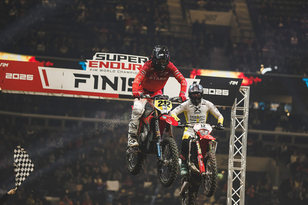 In Final 2, Gómez looked for redemption, and found it. Fighting his way to the front with less than three minutes to go, the young Spaniard kept out of trouble to secure his first-ever race win and also the first race victory for Stark in the FIM SuperEnduro World Championship. Britain’s Toby Shaw (GASGAS) finished second, with Schmüser third.
