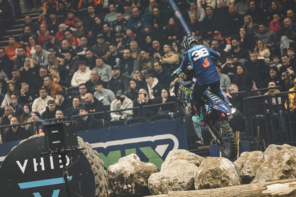 Fourteen-thousand spectators filled the MVM Dome stadium in Budapest, Hungary, to watch an action-packed night of racing for round four of the FIM SuperEnduro World Championship. Entertaining the crowd with thrilling racing, it was Husqvarna Factory Racing’s Billy Bolt who stole the show by claiming the overall Prestige class win. In the Junior class, Germany’s Milan Schmüser (Beta) was pushed hard all the way by Manuel Gómez (Stark) for the top step of the podium, while Poland’s Wojtek Walczak (KTM) took his second overall victory of the season in the Youth Cup category.