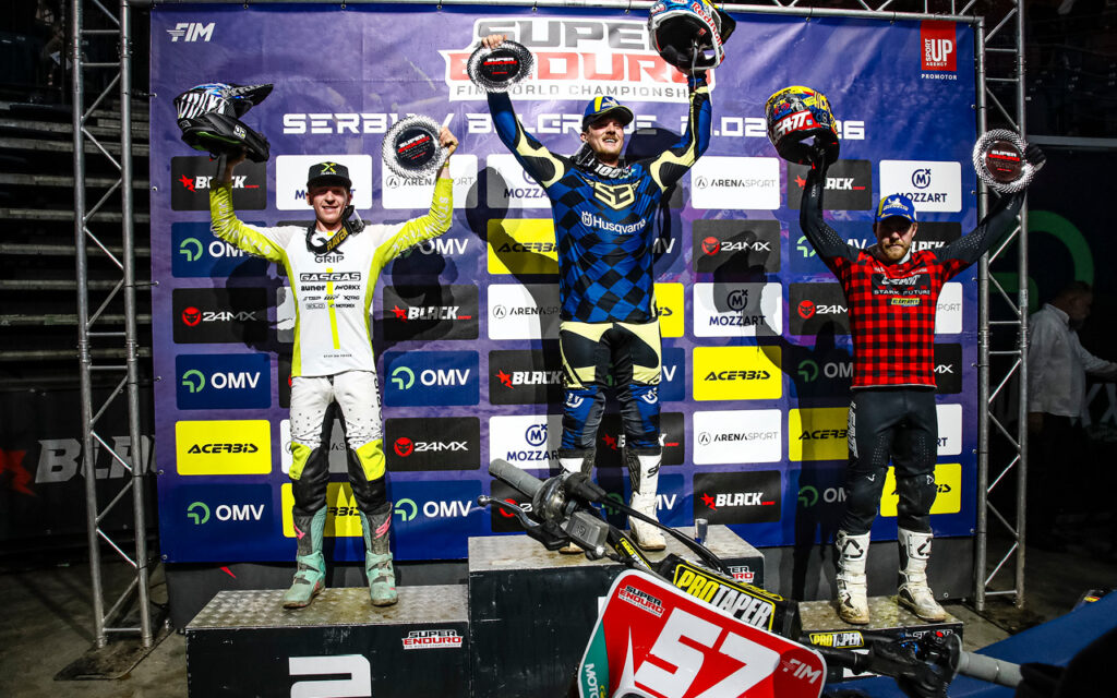 The FIM SuperEnduro World Championship was treated to a spectacular first-ever GP of Serbia with Husqvarna Factory Racing’s Billy Bolt racing to victory in front of 10,000 spectators in Belgrade.